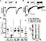 Figure 7 The NO and peroxynitrite donor SIN-1 inhibits the BzATP-induced ion channel functions in human P2X7 receptor (hP2X7R) expressing HEK cells via the cysteine C377 in the C-terminal intracellular loop. (A, B) Depicted are representative current curves of whole-cell patch-clamp measurements. (A, C) In control experiments (ctrl) on human wild-type (WT) P2X7R expressing HEK cells (WT hP2X7-HEK), consecutive application of the P2X7R agonist BzATP (100 µM) induced repetitive ion current stimulations (BzATP1 and 2). (B, C) In the presence of SIN-1 (1 mM), the BzATP-induced ion current was blunted. (C) Similar experiments were performed on HEK cells expressing hP2X7R mutants generated by replacing cysteine 377 or 388 by an alanine (hP2X7_C377A; hP2X7_C388A) in the C-terminal intracellular loop. The BzATP-induced current changes (ΔIBzATP1, ΔIBzATP2) were normalized (ΔIBzATP2/ΔIBzATP1). (C) All BzATP-induced current changes (ΔIBzATP) are shown as individual data points, bars represent median, whiskers encompass the 25th to 75th percentile. *p ≤ 0.05, Friedman test followed by the Wilcoxon signed-rank test.