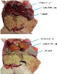 Figure 11. An albino X. laevis both before (top) and after (bottom) rapid perfusion. The albinism makes it easier to determine the proficiency of the perfusion than it would be in a pigmented animal. This is especially apparent in the lung and liver tissues.