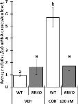 (C). Bars represent mean mRNA levels relative to the housekeeping gene rpl8 and normalized to a vehicle control sample. n = 10 tail samples per treatment. Error bars represent SE. Letters indicate significant groups, p < 0.05.