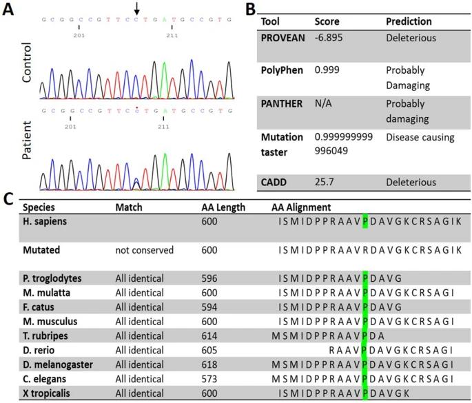Genetic findings of the Cypriot proband. A Electropherogram of the control ATP1A1 sequence (upper) versus patient ATP1A1: c.1799C > G (p.P600R) sequence (lower). B In silico analysis of the ATP1A1: c.1799C > G (p.P600R). C Conversation analysis of amino acid sequences of ATP1A1 (NM_000701.8) across species compared to p.P600R