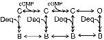 Figure 5. . Block by dequalinium is state independent. (A) Dose-response relations for dequalinium block in the presence of saturating cGMP (2 mM cGMP, filled squares) and in the presence of subsaturating cGMP (32 μM cGMP, open circles). Data are presented as fraction of block for comparison purposes. The smooth line is a fit with Eq. 1, K1/2 = 189 nM. (B) Dose-response for cGMP in the absence (filled diamonds) and presence of 400 nM dequalinium (open diamonds). Error bars represent SEM, n = 4 patches. The smooth lines represent fits to the Eq.1 with K1/2 = 80 μM in the presence of dequalinium K1/2 = 90 μM in the absence of dequalinium. Dotted line represents normalization of the data obtained in the presence of 400 nM dequalinium to the data obtained in the absence of dequalinium, K1/2 = 80 μM. (C) Predicted fits with the models shown in Schemes 1–4. Filled and hollow diamonds are from the same data in B. The dashed line represents a fit with Scheme III (pure open channel block), the dotted line represents block only in the closed state (Scheme II, pure closed channel block) and the thin line represents block occurring equally during the closed and open states of the channel with a KD = 50 nM for both of the conformational states (Scheme IV). The parameter values for these fits were L = 19 and K = 3800 M−1 (in all cases). (D) Block of currents by 250 nM dequalinium in the presence of 2 mM cGMP (left) and in the presence of 20 mM cIMP, a partial agonist of these channels (right). In both cases block was of ∼48%.