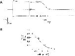 Figure 7. . Interaction of dequalinium with the permeant ion. (A) Dose-response relation for block by dequalinium in 130 mM NaCl (circles) with K1/2 = 189 nM and (B) triangles represent data obtained with 13 mM NaCl with K1/2 = 39 nM (knock-off experiment) and the dotted-line represents data shown in A (see materials and methods). Error bars represent SEM, n = 5.