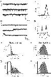 Figure 8. . Single-channel recordings. (A) Single-channel current traces in response to depolarizing voltage pulses to 60 mV in the presence of 2 mM cGMP. Channel open probability = 0.92. Open (O) and closed (C) levels are indicated in the figure. (B) All-points amplitude histogram that corresponds to a current amplitude of 1.9 pA. (C) Current traces from the same channel in A recorded in the presence of 5 nM dequalinium at the same potential. (D) The amplitude histogram shows that the single-channel conductance remains unchanged. (E) The closed distribution for cGMP alone can be fit with sum of two exponentials of time constants 0.34 and 8.4 ms. (F) Open time constant for cGMP alone. The distribution can be fitted with sums of two exponentials with time constants 3.4 and 16 ms. (G) Closed time distribution in the presence of 5 nm dequalinium. In the presence of dequalinium the same time constants are present (0.35 and 7.2 ms), but a third (43.7 ms) appears that corresponds to the blocked state. (H) Open time distribution in the presence of 5 nM dequalinium. The distribution can be fitted with sums to two exponentials (3.4 and 15.6 ms). Similar results were obtained from three other single-channel patches.
