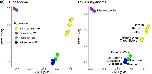 Fig. 3. Principal components analysis of RRGS data from X. laevis for the (a) L and (b) S subgenomes. For each analysis, the percentages of genotypic variation represented by the first and second principal components (PC1 and PC2, respectively) are indicated. Patterns of population structure are similar in each subgenome and samples cluster by rainfall zone (indicated with color in the left panel) and by locality (labeled in right panel).