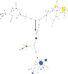 Fig. 6. Parsimony network of partial X. laevis mitochondrial sequences. Colors correspond to Fig. 2; the size of the nodes is proportional to the number of samples with each haplotype. Inferred nodes are indicated with black nodes; hashes on branches indicate changes between nodes that are not represented by a sampled sequence.