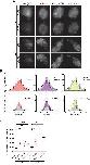 Figure 3. Deletion of the CAP-H N-tail enables condensin I to assemble mitotic chromosome-like structures even in interphase extracts.(A) Mouse sperm nuclei were incubated with M-HSS (left) and I-HSS (right) for 150 min, and the reaction mixtures were fixed and processed for immunofluorescence labeling with an antibody against XSMC2 (bottom). DNA was counterstained with DAPI (top). Scale bar, 10 μm. (B) Mouse sperm nuclei were incubated with condensin-depleted I-HSS that had been supplemented with a control buffer, holo(WT), or holo(H-dN) at a final concentration of 35 or 150 nM. After 15, 30, and 150 min, the reaction mixtures were fixed and processed for immunofluorescence labeling with an antibody against mSMC4. DNA was counterstained with DAPI. Shown here is a representative image from over 10 chromosome clusters examined per condition. Scale bar, 10 μm. (C) Blow-up images of a chromatin ‘mass’ assembled with 150 nM holo(WT) at 150 min and a cluster of mitotic ‘chromosome-like’ structures assembled with 150 nM holo(H-dN) at 150 min in the experiment shown in (B). Frequencies of the chromosomal phenotypes observed under the two conditions, which include ‘intermediate’ structures, are plotted on the right (n = 10 for each condition). Scale bar, 10 μm. (D) Quantification of mSMC4 intensities on interphase chromatin when added holo(WT) or holo(H-dN) at 150 nM. The graph shows the intensity of mSMC4 per the DAPI area (n = 10 masses of chromatin) shown in (B). The error bars represent the mean ± standard error of the mean (SEM). The p values were assessed by Tukey’s multiple comparison test after obtaining a significant difference with two-way analysis of variance (ANOVA). A dataset from a single representative experiment out of three repeats is shown. Another set of the reproduced result was also shown in Figure 3—figure supplement 1. Figure 3—source data 1. Microsoft excel of non-normalized data corresponding to Figure 3D. |
