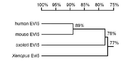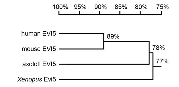 Figure S1. Sequence comparison of Evi5. Comparison of human, mouse, axolotl and Xenopus Evi5 protein sequence.