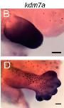 kdm7a (ysine (K)-specific demethylase 7A) gene expression in X. laevis embryo, NF stage 52 hindlimb bud and NF stage 54 hindlimb.