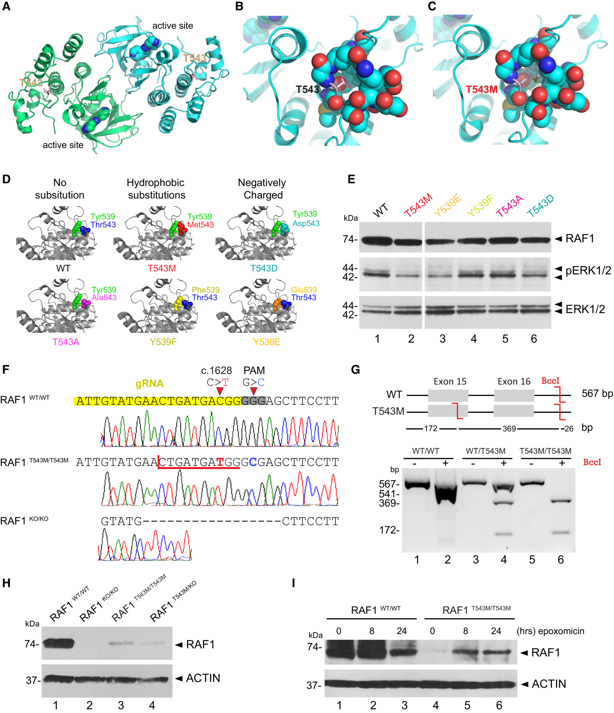 RAF1T543M/T543M knock-in cells reveal RAF1's compromised protein half-life