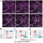 Movie S3: Knockdown of plekhg5 leads to failure of apical accumulation of F-actin in bottle cells. Initial F-actin dynamics and limited number of microvilli (puncta inside the cells) persist in the knockdown cells, but the progress toward enhanced F-actin intensity is stalled. Magenta, membrane-mCherry; gray, Utrophin-GFP.