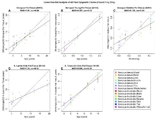 DNA methylation clocks for clawed frogs reveal evolutionary conservation of epigenetic aging.