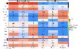 Fig. 6. Chromatin state analysis of age-related CpGs. The heatmap color-codes the hypergeometric overlap analysis between age-related CpGs (columns) and two groupings of CpGs (a) binding by Polycomb repressive complex 1 and 2 (PRC1, PRC2) defined based on ChipSeq datasets in ENCODE [64] and (b) universal chromatin states analysis [61], see the first two rows. The background is based on the 4239 mammalian CpGs that can map to the X. tropicalis genome (v9.1.102). The first column shows a bar plot that reports the proportion of CpGs bound by PRC2 that ranges from zero (RPC1) to one (PRC2). For each row (chromatin state or PRC annotation), the table reports odds ratios (OR) from hypergeometric test results for the top 500 CpGs that increased/decreased with age from meta-EWAS, X. laevis EWAS and X. tropicalis EWAS, respectively. The heatmap color gradient is based on -log10 (unadjusted hypergeometric P-value) multiplied by the sign of OR greater than one. Red colors denote OR greater than one in contrast with blue colors for OR less than one. Legend lists states based on their group category and PRC group. The y-axis lists chromatin states and PRC2 target sites. The left/right panel lists the results based on the top 500 CpGs with positive/negative age correlation. We display 16 universal chromatin states that show significant enrichment/depletion at P < 0.001 in any of the EWAS