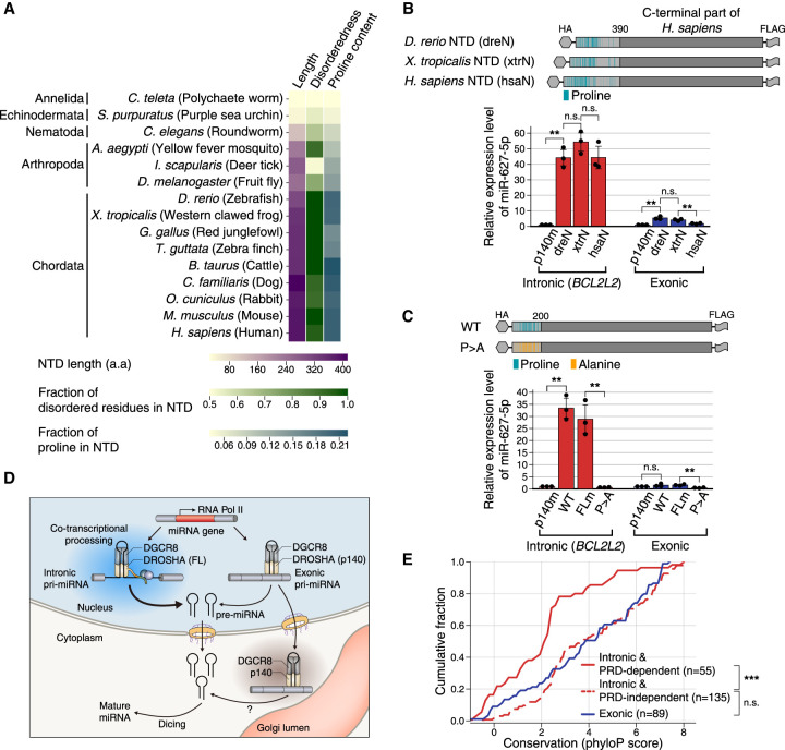 Role of the proline-rich disordered domain of DROSHA in intronic microRNA processing.
