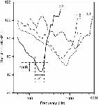 Tuning curves measured in the auditory nerve in R. catesbeiana (unpublished measurements by JMS & PvD, 1992; various specimens). The numbers in the graph indicate 𝑄10dB