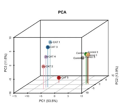 Supplementary Figure S3 PCA score plot from untargeted metabolomics of supernatants from βγ-CAT-treated and PBS-treated (control) BMDF-EVs