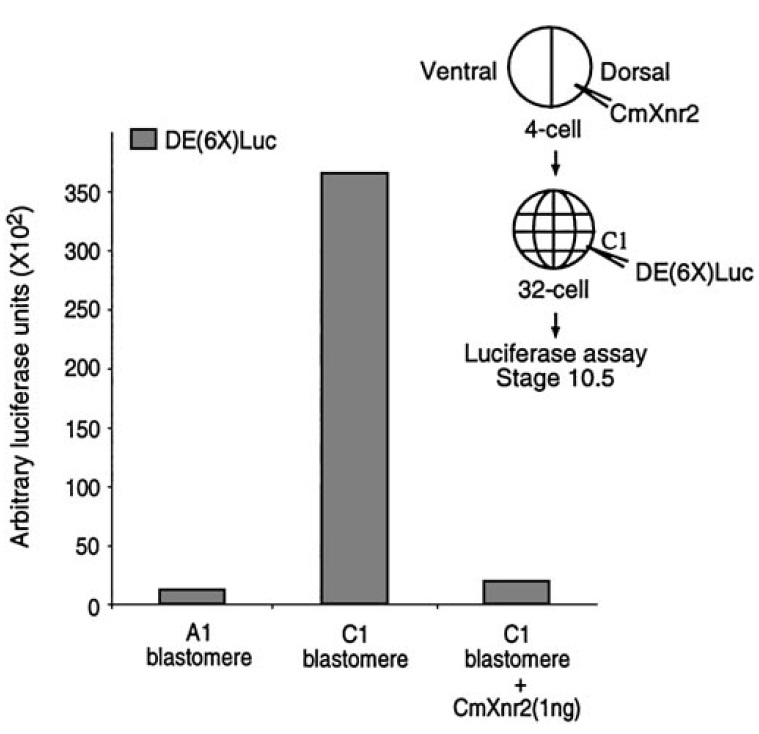 CmXnr2 mRNA was injected subequatorially into the two dorsal
