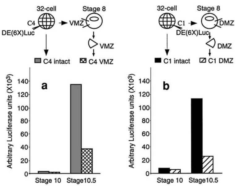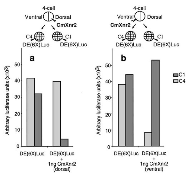 Luc into the C1 or C4 blastomere at the 32-cell stage and assayed