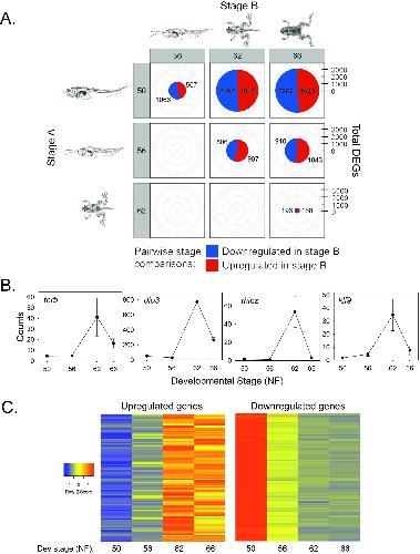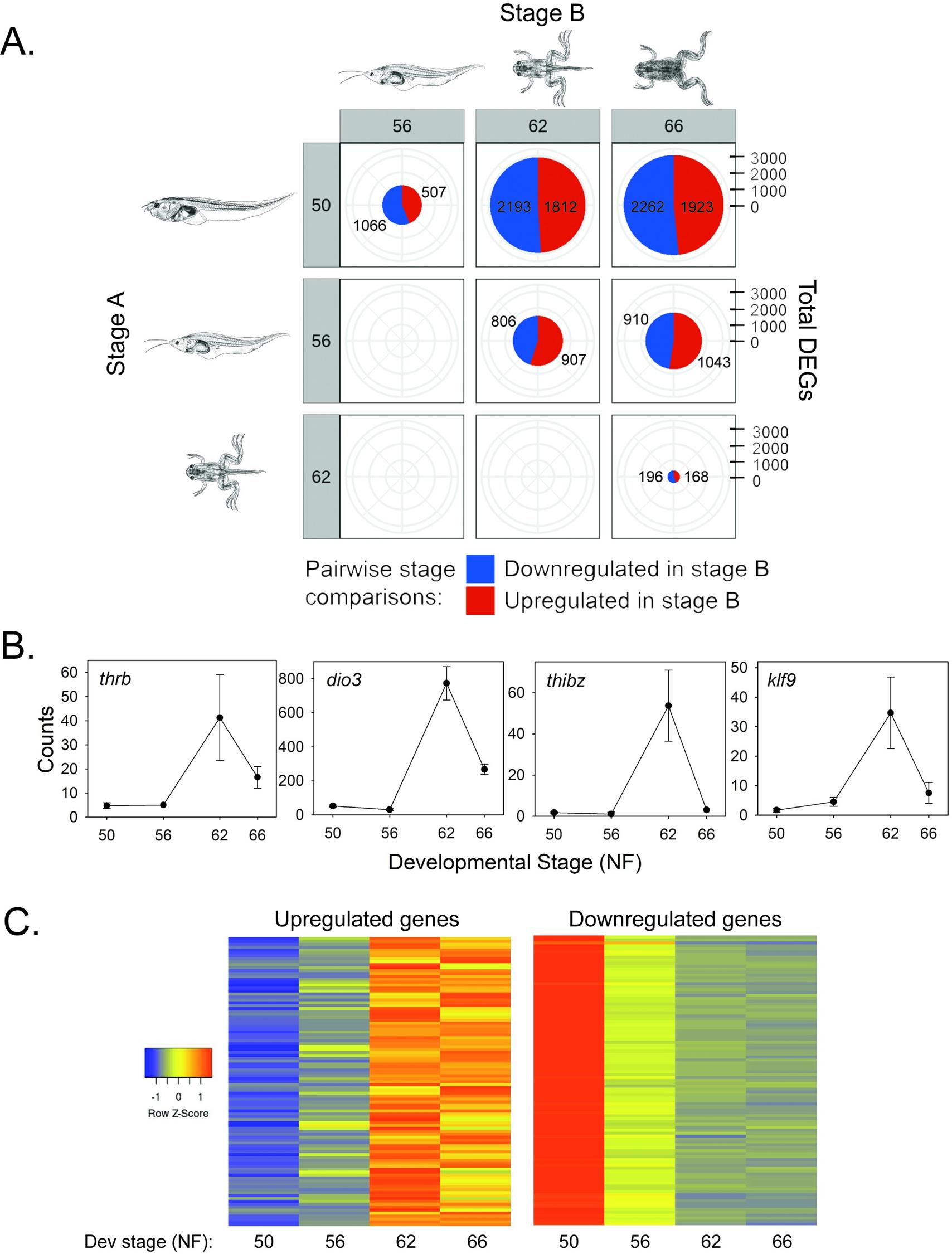 Fig 2. Patterns of gene regulation in X. tropicalis tadpolebrain during spontaneous metamorphosis or after T3 treatment analyzed by RNA-sequencing.