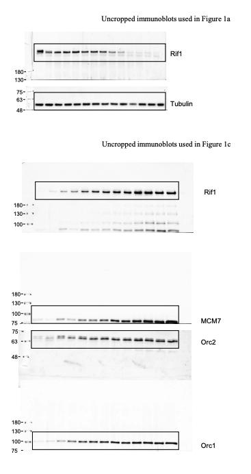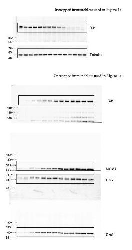 replication. b Rif1 depletion, 90 min from two biological replicates, mean 38 % replication. c Rif depletion, mean 14 %