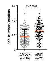 Supplementary Figure 5: Rif1 depletion increases replication foci number.