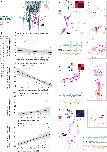 Figure 8. Multi-glomerular MTCs potentially re-converge input of anatomically distinct axon terminals of individual ORNs (A) Maximum intensity projection of the olfactory bulb with superimposed reconstructed ORN and MTC morphologies. In brainbow tadpoles, ORN axons that underwent CRE-mediated recombination are visible as green or cyan, fibrous structures. Scale bar equals 50 µm. (B) Close up of lateral glomerular cluster with colocalized axon terminals of a single ORN (green, arrowheads) and the two tufted dendrites of a single MTC (red, asterisks). Also visible are an additional, prominent ORN axon (cyan, empty arrowhead) and another tuft of a different MTC (empty asterisk). Note overrepresented autofluorescent, granular structures (white signal) due to contrast enhancement to visualize faint Cerulean and EYFP fluorescence. Scale bar equals 10 µm. (C) 3D reconstruction of an ORN (magenta) and an MTC (yellow) that innervate the same glomeruli with their two axon terminals/tufted dendrites and form a divergent-convergent glomerular module (pseudo-multiglomerular). Two additional labeled MTCs (red, green) are also shown. Scale bar equals 10 µm. (D and E) Reconstructions of multi-glomerular sister MTCs pairs (blue, yellow) that were labeled by sparse cell electroporation. They innervate the same set of glomeruli with their dendritic tufts (white asterisks). Note that glomeruli are sometimes very close and dendritic tufts are unequally arborized. Scale bar equals 10 µm. |