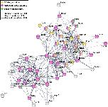 Figure 4. Integrin and ECM protein interaction networksSTRING analysis and pathway enrichment analysis using the Xenopus interaction database show enrichment of processes related to ECM organization (yellow), anatomical structure development (pink), and sensory organ development (green). Interactions among proteins are reported with medium to highest confidence represented by thickness of lines.