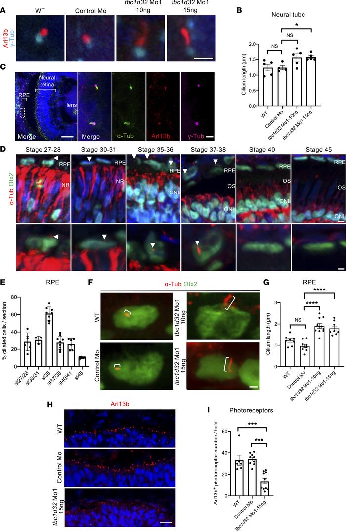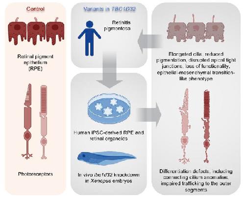 TBC1D32 variants disrupt retinal ciliogenesis and cause retinitis pigmentosa.