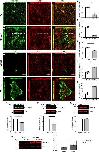 Supplemental Figure 12. Quality controls of TBC1D32 iPSC lines from Patient 1. A) qPCR analysis of the pluripotency markers NANOG, OCT3/4 and LIN28A in fibroblasts, fibroblasts transduced with Sendai reprogramming vectors (Fibro SeV+; light grey bars), TBC1D32 iPSC lines 1 and 2 (dark grey bars), and a control iPSC line (black bars). Data are represented as mean ± SEM. B) IF analysis of the pluripotency markers NANOG, OCT3/4 and SOX2 (in green; nuclei labelled in blue) in TBC1D32 iPSC line 1. Scale bars = 70 μm. C) IF analysis of the germline markers glial fibrillary acidic protein (GFAP; ectoderm), smooth muscle actin (SMA; mesoderm) and alpha-fetoprotein (AFP; endoderm), following EB differentiation of TBC1D32 iPSC line 2. Scale bars = 40 μm. D) Digital qPCR analysis of rearrangement hotspots in TBC1D32 iPSC lines showing a copy number of 2 for all autosomal regions, and a copy number of 1 for the X chromosome. E) qPCR analysis of TBC1D32 expression in TBC1D32 iPSC lines (grey bars) in comparison to a control line (black bar). Data are represented as mean ± SEM; n = 3 technical replicates; p<0.05; Mann and Whitney. F) Sanger sequencing of the regions carrying the variants c.317+5G>A and c.846delTCCTA (red boxes) in the TBC1D32 iPSC line 1 in comparison to a control iPSC line. |