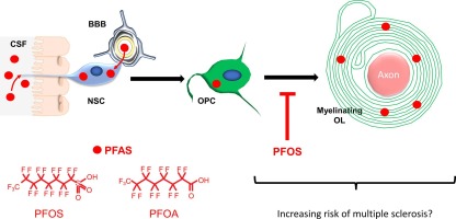 Deleterious functional consequences of perfluoroalkyl substances accumulation into the myelin sheath.