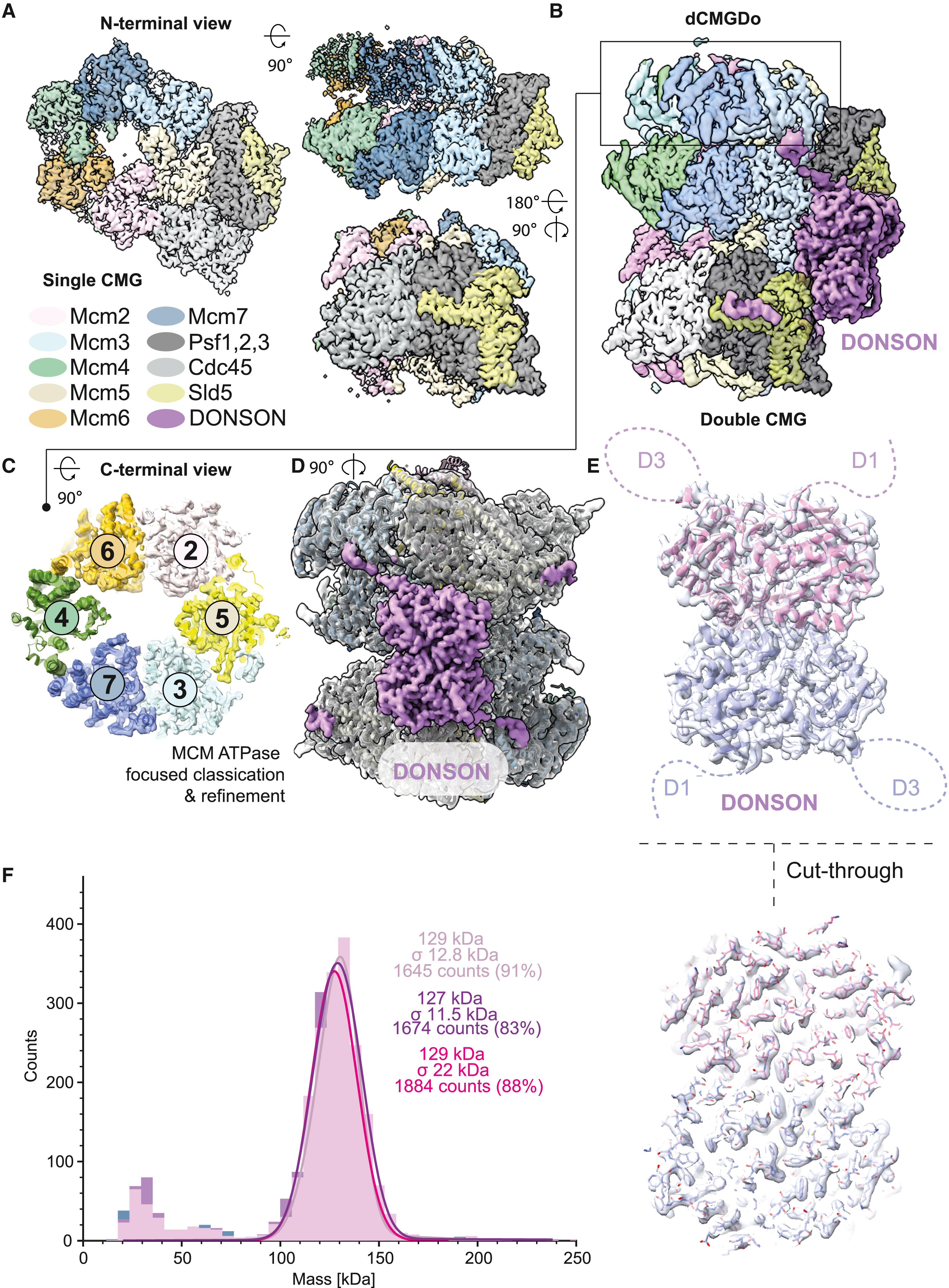 Figure 2. Cryo-EM analysis of Cdc45 containing complexes leads to identification of a DONSON-bound double CMG assembly