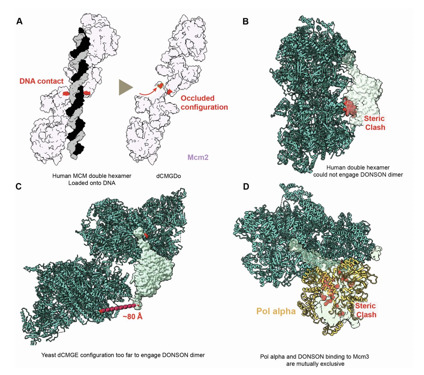 (B) Mcm3 engagement by DONSON, as observed in dCMGDo, is incompatible with double