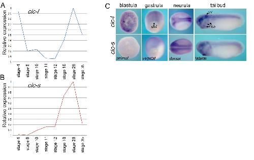 S2 Fig. Temporal and spatial expression patterns of Xenopus cic-s and cic-l.