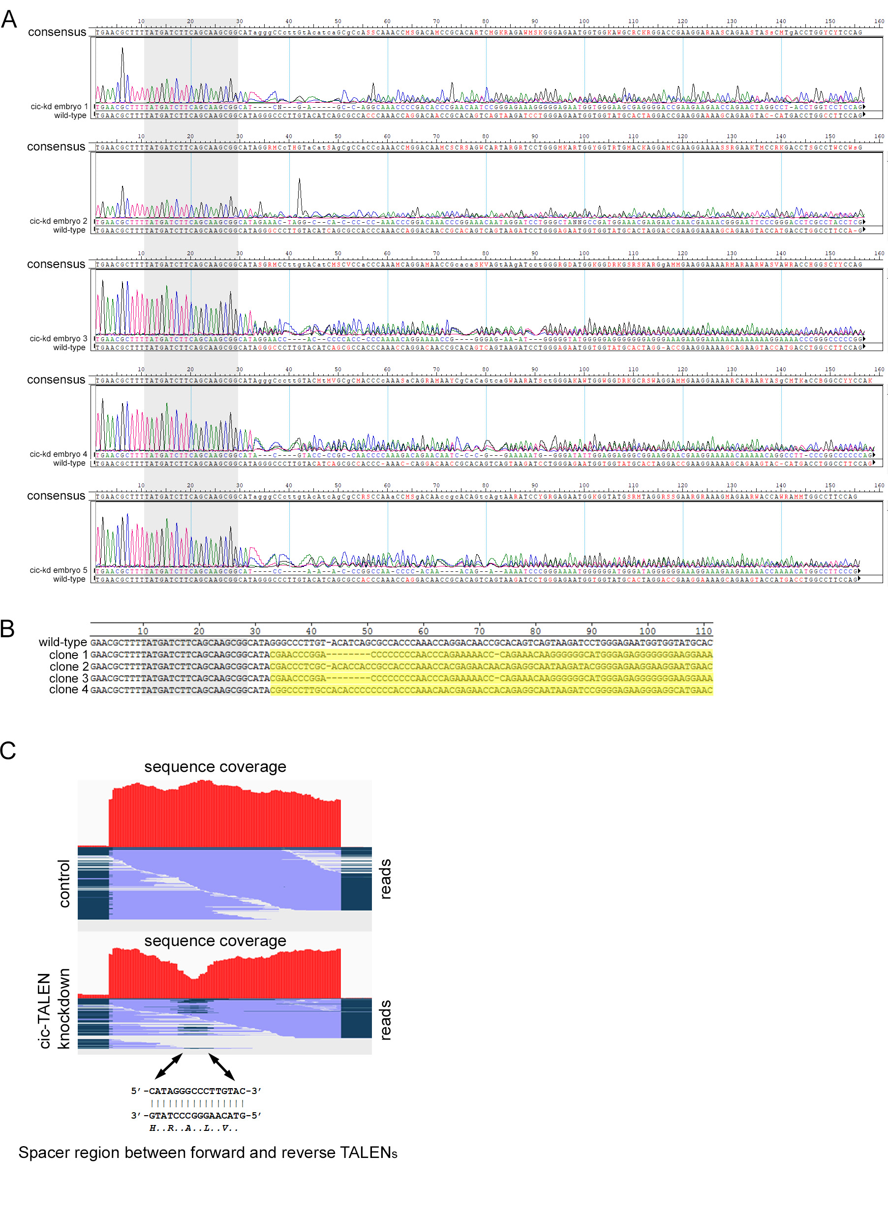 S4 Fig. Analysis of gene targeting in Cic-TALEN knockdown embryos.
