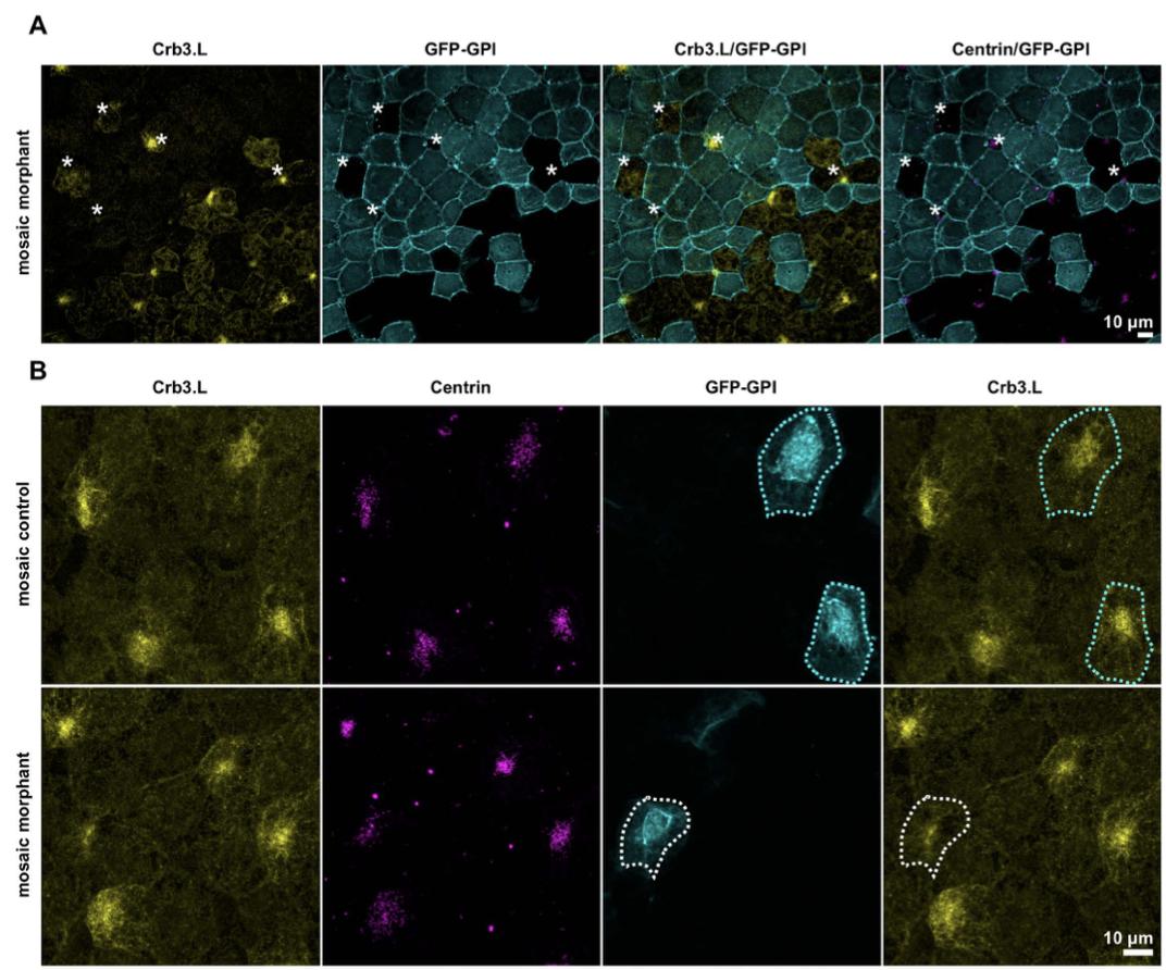 Crb3 is required to organize the apical domain of multiciliated cells.