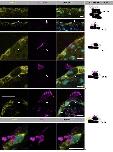 Fig. S3. Crb3.L antibody staining decreases upon crb3.L morpholino depletion A-B: Maximal intensity projection of whole-mount St 20 Xenopus laevis embryos. Control embryos were injectedwith200pg GFP-GPImRNAtolabelcellmembranes.MorphantswereinjectedwithGFP- GPI mRNA and anti crb3.L morpholino. Mosaic regions of control and morphant embryos allow easy comparison of Crb3.L staining between noninjected and tracer injected cells (in control embryo), or noninjected and Crb3.L-depleted cells (in morphants). BBs are detected with anti- Centrin antibody,cellmembranesarelabelledwithGFP-GPI. A: mosaic morphant region showing that Crb3.L expression is globally decreased in all injected cells, including non-MCCs cells. *indicates noninjected cells or area in otherwise 5’UTR-crb3.L-mo injected region B: mosaic regions focusing on MCCs expanding their apical surface. White dotted lines surround crb3.L morpholino and tracer injected MCCs. Cyan dotted lines surround control MCCs injected with the tracer alone. |