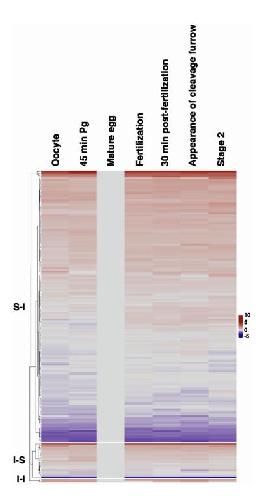 S-Fig 5. Heatmap shows the change in protein expression across developmental time points, related to Figure 1. From the top to bottom are proteins encoded by S-I, I-S, and I-I RNAs. |