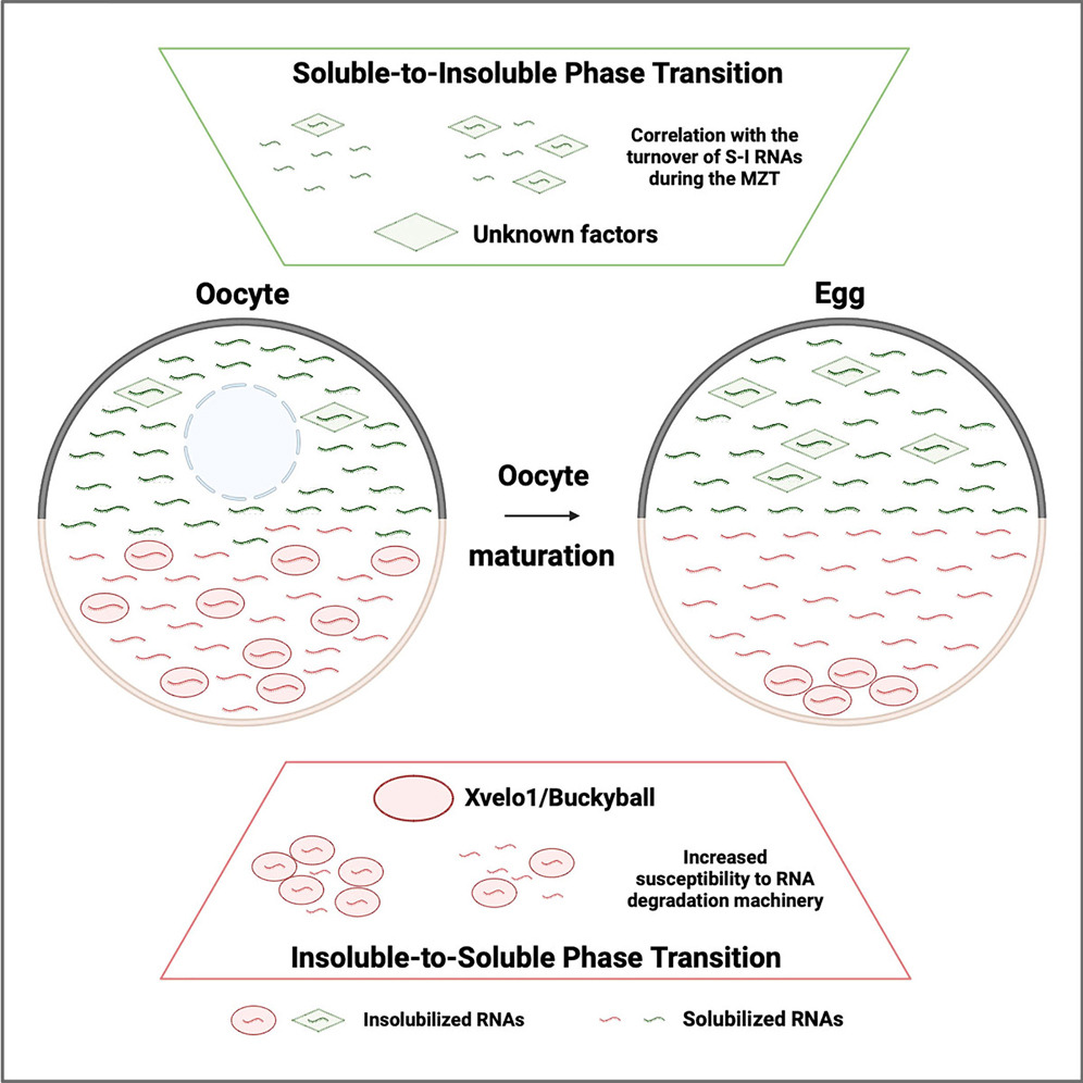 Solubility phase transition of maternal RNAs during vertebrate oocyte-to-embryo transition.