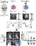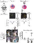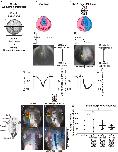 Figure 12. Perturbation of voltage to decrease neural plate hyperpolarized cells while minimally changing the overall voltage pattern leads to significant brain morphology defects (A) Illustration of Xenopus embryo at stage 3 (four-cell) indicating two dorsal blastomeres as main precursors of eye and brain and two ventral blastomeres as main precursors of non-neural tissues.137,171 (B) Endogenous voltage pattern in control (uninjected) stage ∼15 embryos. Top: illustration of expected membrane voltage distribution in stage 15 embryo and expected voltage pattern along the dashed line; bottom: representative image of embryo stained with CC2-DMPE:DiBAC4 voltage reporter dyes, showing characteristic hyperpolarization in the neural plate (yellow arrows) and surrounding depolarized ectoderm80,87,88 (N = 6) and quantification of CC2-DMPE:DiBAC4 images along the dashed line indicated in the illustration along with electrophysiology-based membrane voltage approximations. Data are mean+/− SD. (C) Altered voltage pattern in stage ∼15 embryos microinjected with DN-KATP + β-galactosidase mRNA in one dorsal blastomere at four-cell stage. Top: illustration of expected membrane voltage distribution in injected stage 15 embryo and expected voltage pattern along the dashed line; bottom: representative image of injected embryo stained with CC2-DMPE: DiBAC4 membrane voltage reporter dyes showing reduced region of hyperpolarization in neural plate and narrower hyperpolarization region (empty yellow arrow) (N > 6 embryos per experimental group) and quantification of CC2-DMPE:DiBAC4 images along the dashed line indicated in the illustration along with electrophysiology-based membrane voltage approximations. Data are mean+/− SD. (D–G) Representative images of stage 45 tadpoles. (D, E) Tadpoles from uninjected (D) or microinjected with DN-KATP + β-galactosidase mRNA (E) embryos. Blue arrowheads indicate intact nostrils; orange, yellow, and cyan brackets indicate intact forebrain (FB), midbrain (MB), and hindbrain (HB), respectively. (e) indicates intact eyes, and orange arrowheads indicate mispatterned brain and eye. (F, G) β-Galactosidase expression assessed using X-Gal (blue) in bleached tadpoles either left uninjected (controls) or co-injected with DN-KATP + β-galactosidase mRNA. There was no X-gal staining (magenta arrowheads) in uninjected tadpoles (F) In injected tadpoles (G), β-galactosidase was observed in the eye and brain on the injected side (blue arrowheads) but not the uninjected side (magenta arrowheads), confirming expected targeting of microinjected mRNAs. (N > 10 tadpoles per experimental group). (H) DN-KATP + β-galactosidase injection significantly increased the percentage of stage 45 tadpoles with brain morphology defects: uninjected or β-galactosidase controls—both 9%; DN-KATP + β-galactosidase—53%. All injections were made into the right dorsal blastomere at four-cell stage as indicated in the schematic under each graph. Data are mean ± SD, ∗∗p < 0.01, n.s. = non-significant (one-way ANOVA with Tukey’s post-hoc test for n = 3 independent experiments with N > 50 embryos per treatment group per experiment). |