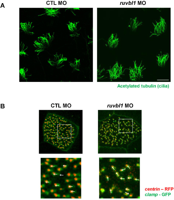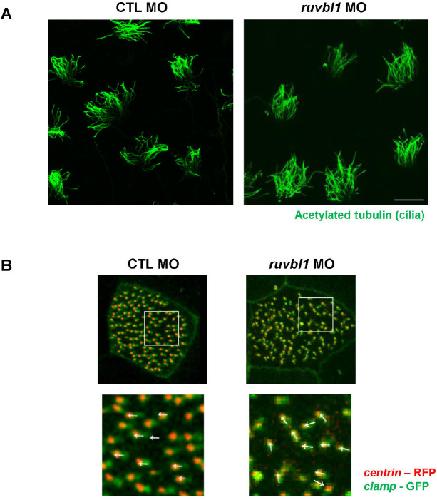 Xenopus laevis epidermis.(A) Control MO (32 ng) or ruvbl1 MO (32 ng) was injected