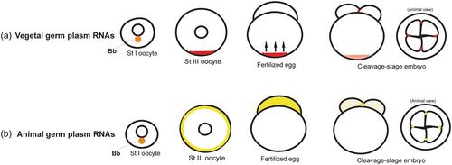 Germ plasm dynamics during oogenesis and early embryonic development in Xenopus and zebrafish.