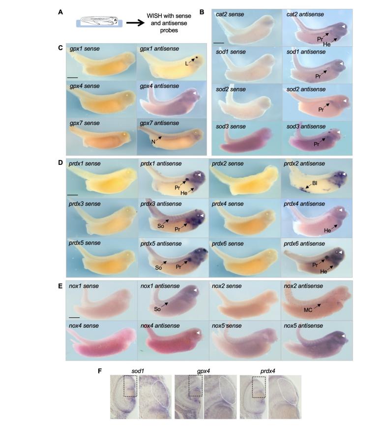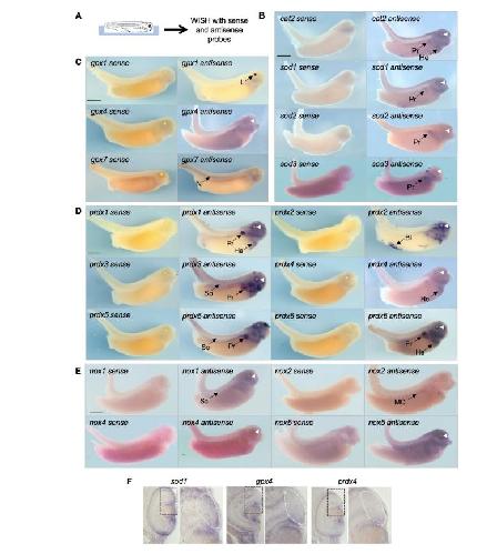 cat2, sod1-3, gpx1/4/7, prdx1-6 and nox1/2/4/5 expression (stage 38/39 embryos).