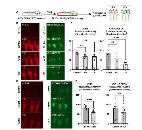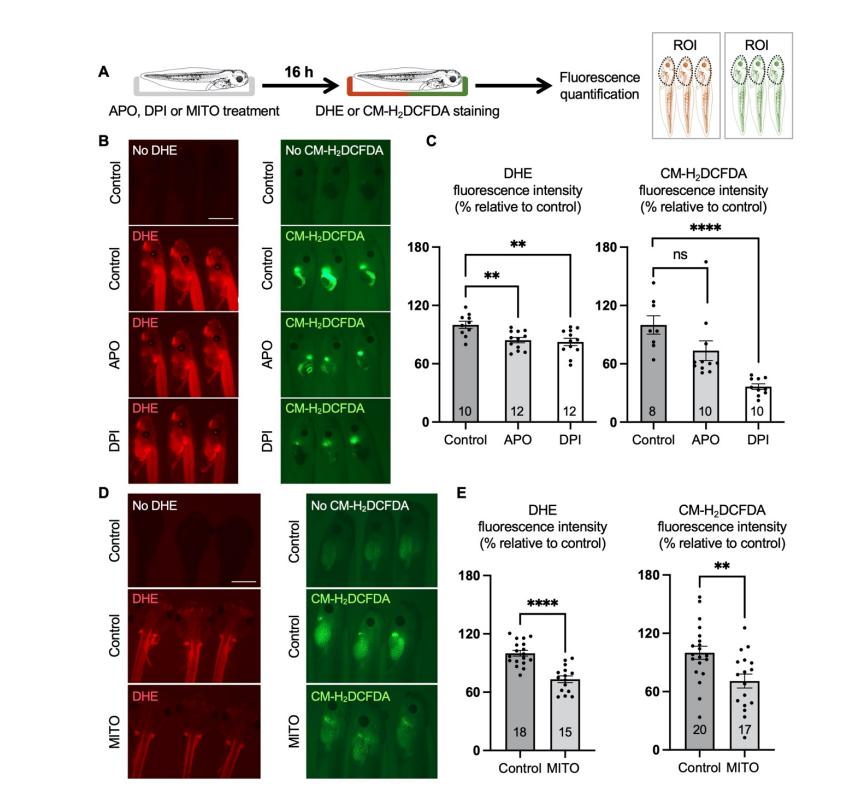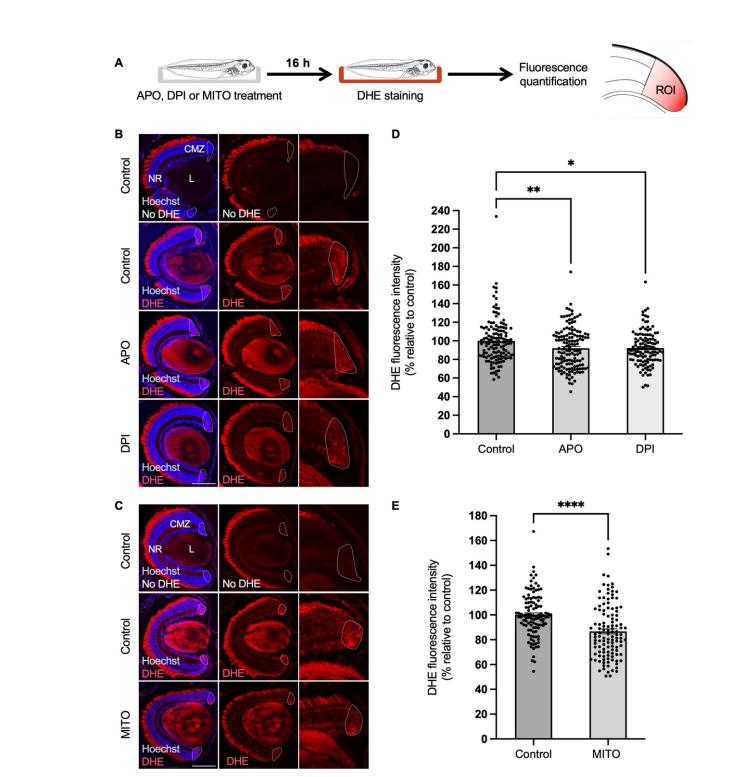 DHE or CM-H2DCFDA. Fluorescence intensity was quantified in the anterior region