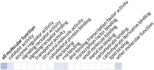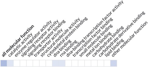 Fig. 3. Alliance ribbon view for the yeast RPB7 gene. High-level GO categories annotated are shown in shaded squares (https://www.alliancegenome.org/gene/SGD:S000002812); darker shading indicates more annotations in that category. |