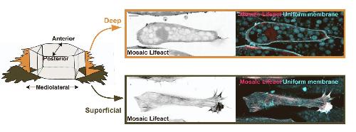 mesoderm cells. Related to Figure 1. Schematic at left shows a cell in the DMZ with axes