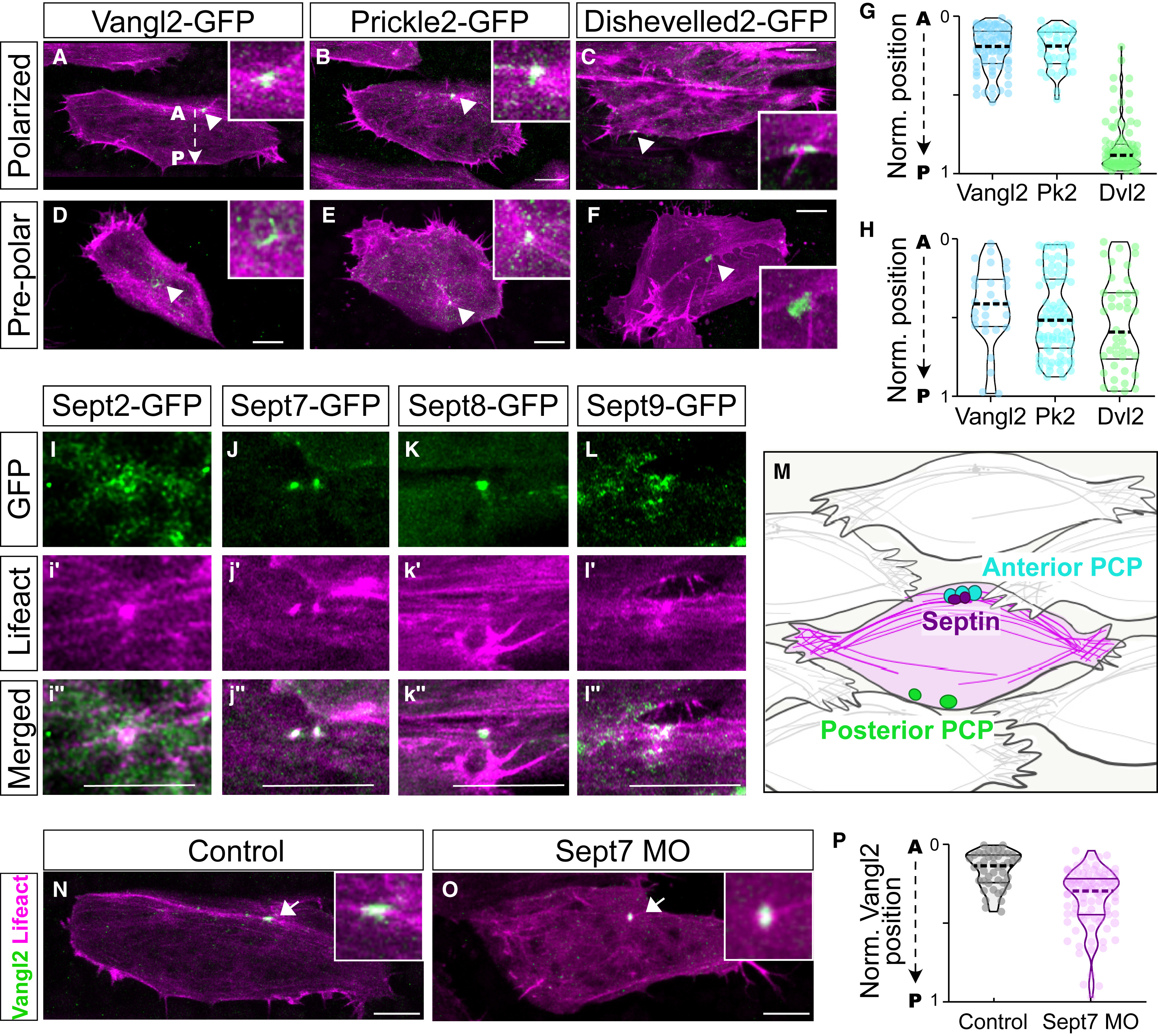 (N and O) Vangl2-GFP localization in control and Sept7MO cells.