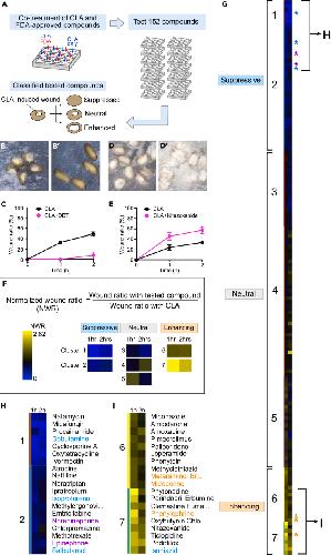 Figure 2. Chemical screening for the detection of adrenergic receptors(A) The screening procedure. Five to ten embryos in each well were treated with CLA and FDA-approved compounds. In the study, 152 compounds were tested and the effect was classified based on the wound size.(B and B') Example compounds classified as suppressive: CLA (B) and CLA and DBT (B').(C) Wound ratio for embryos shown in B and B', calculated to quantify the suppressive effect of DBT against CLA.(D and D') Example compounds classified as enhancing: CLA (D) and CLA and nitazoxanide (D').(E) Wound ratio for embryos shown in (D) and (D').(F) Wound ratio of each FDA-approved compound, normalized to the CLA wound ratio (NWR). NWR values at 1 and 2 h after treatment were converted to heatmap colors using Web MeV (http://mev.tm4.org/).(G) Clustering of compounds based on the heatmap colors. Blue asterisks indicate ADRB agonists; purple asterisks indicate norepinephrine and epinephrine; orange asterisks indicate ADRA agonists.(H) Zoom-in view of Cluster 1 and 2 compounds from (G).(I) Zoom-in view of Cluster 6 and 7 compounds from (G). (Data in C and E are represented as mean ± SEM. CLA, calyculin A; FDA, US Food and Drug Association; NWR, normalized wound ratio; ADRA, alpha-adrenergic receptor; ADRB, beta-adrenergic receptor). |
