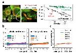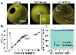 Supplementary Figure 1: Changes in nucleocytoplasmic volume (NCV) ratio for cells in the frog ovary and early development. a, Left: Immunofluorescence (-tubulin and Yo-Pro-1) of a frog ovary shows cells varying by 3-orders of magnitude in diameter (from ~10m to ~1200um). A zoomed-in section of the white framed box is shown to the right. The represented images were independently repeated multiple times for reproducibility and observed with similar results. Right: Quantification of the NCV-ratio versus cell volume for maturing oocytes and early developing embryos. Compared to the rapidly changing embryos, the oocyte NCV-ratios remain approximately constant (decreasing by 2.3-fold as the cell volume increases ~500-fold (from ~2nL to ~1L)) throughout oogenesis. The slight decrease might come from some cytoplasmic volume being excluded by the forming yolk platelets [1,2]. In contrast, the NCV-ratios increase by ~34,000-fold in developing embryos from a ~1uL fertilized egg to ~30pL cells at 46 hours post-fertilization (16C). (Supplementary Data 5). b, k-means clustering (k = 5) of changes in relative protein abundance of the entire proteome (left) and nuclear proteins (right) from the time series of the oocyte to ZGA embryo measured by multiplexed proteomics. The line thickness scales with the number of proteins within a cluster. While the NCV-ratio drastically increases from the fertilized egg to the ZGA, protein levels change little. c, The detected transcription factors reported being involved in the gene regulatory network of the mesendoderm formation do not change their expression levels between fertilization to the ZGA [3] |