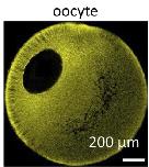 Immunofluorescence images (anti-tubulin) of a large Xenopus oocyte (~1.2mm diameter) soon after fertilization, NF stage 1, where the nucleus has condensed to ~30um in diameter. |