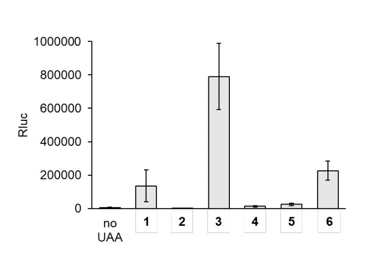 Figure S2. Luciferase assays after addition of UAAs to embryo media. UAAs were added to