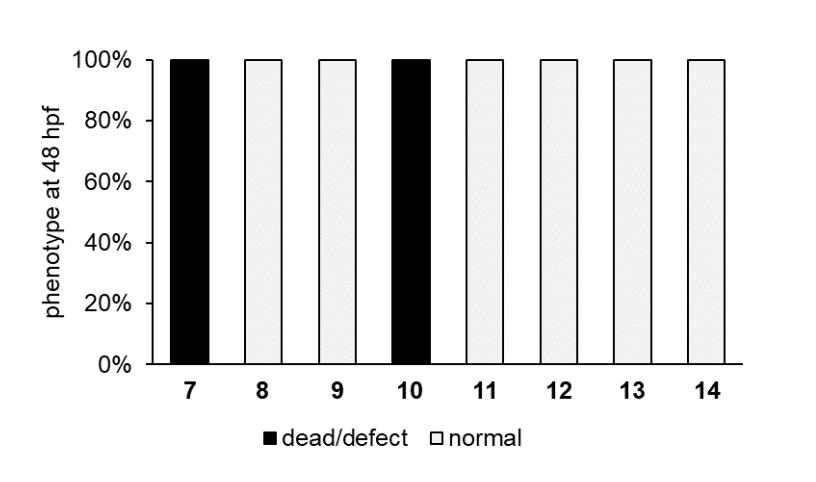 Figure S6. Toxicity assay of the tetrazines after exposure for 3 hours at 24 hpf and scoring at 48